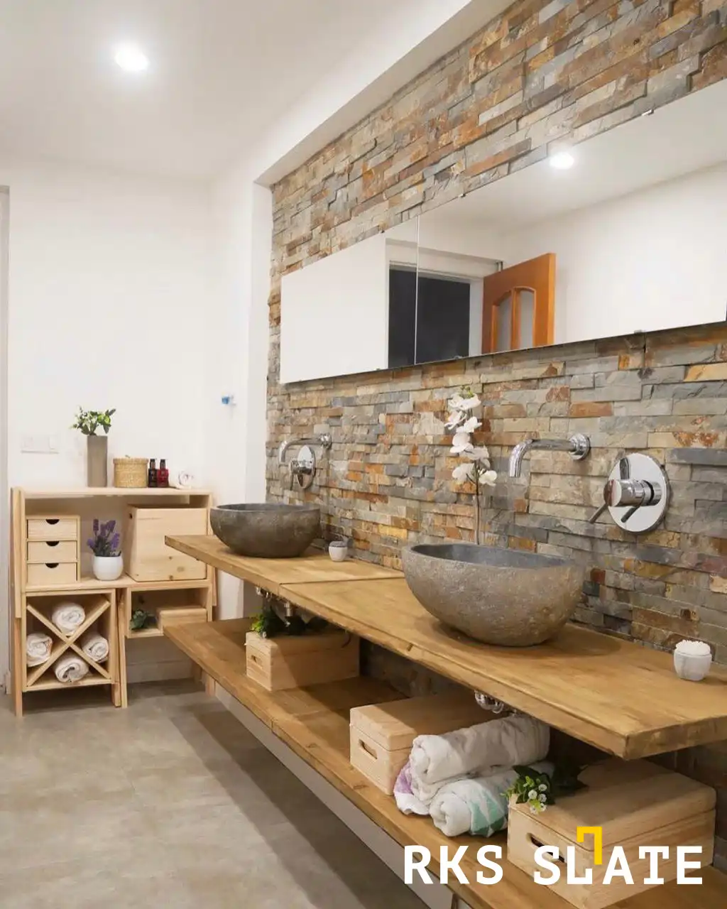 - Ванная комната. Натуральный камень – это идеальный выбор для отделки стен, пола в ванной комнате.